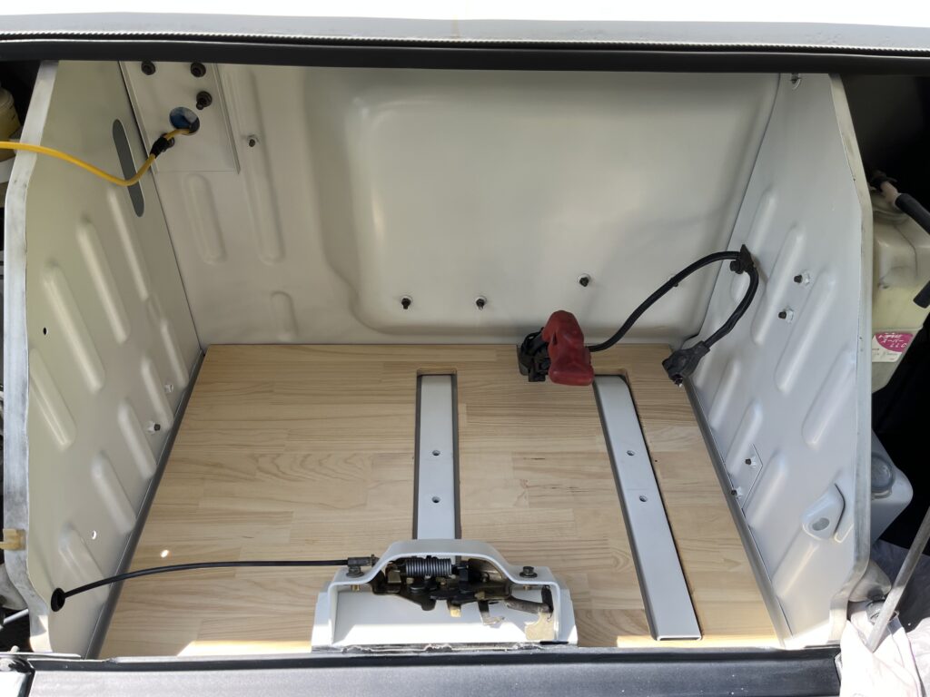 トランクを清掃し、車のボディ色で塗装しました。みすぼらしかった内部が綺麗になりとても嬉しいです。ボンネットフードを留める金具も綺麗にしてグリスを塗りました。