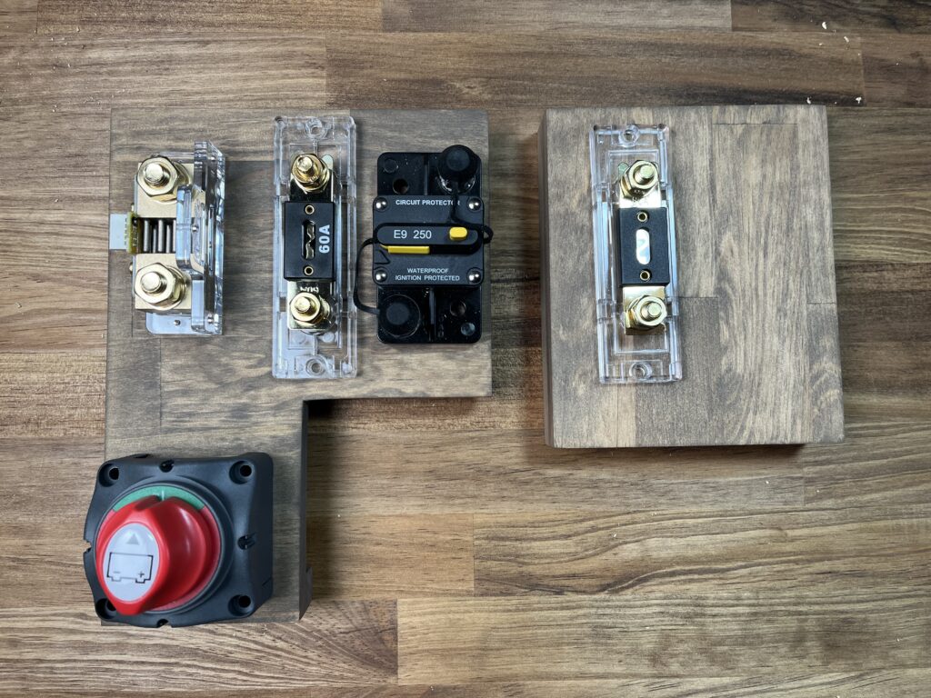 トランク内はバッテリーだけではなく、スイッチ類やヒューズを置く必要があります。