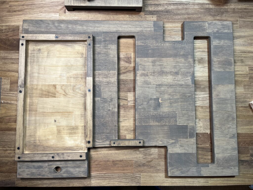 オイルステインで着色するとビンテージ感が出てパーツが映えるように思います。