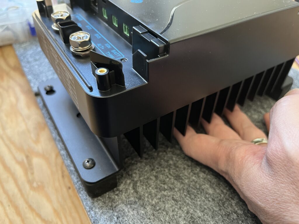 それらはバッテリーの上に台を乗せて置くことにしました。風通しが良くなるよう脚を付けましたので安全上の問題無いと思います。