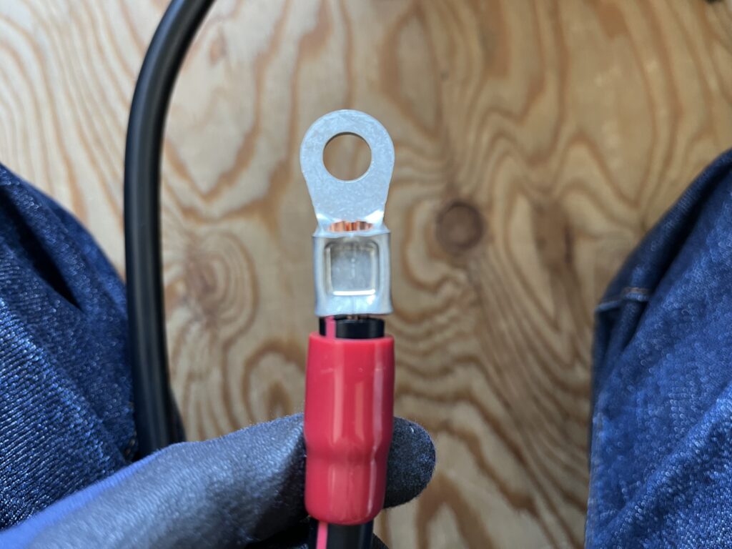 インバーターのケーブルは60SQを選択しました。インバーターに付属していたケーブルは太さが容量以下ではないか?という疑問と、仮に許容範囲でも並列ケーブル(+−ともに各2本に分かれている)だったので使用しませんでした。