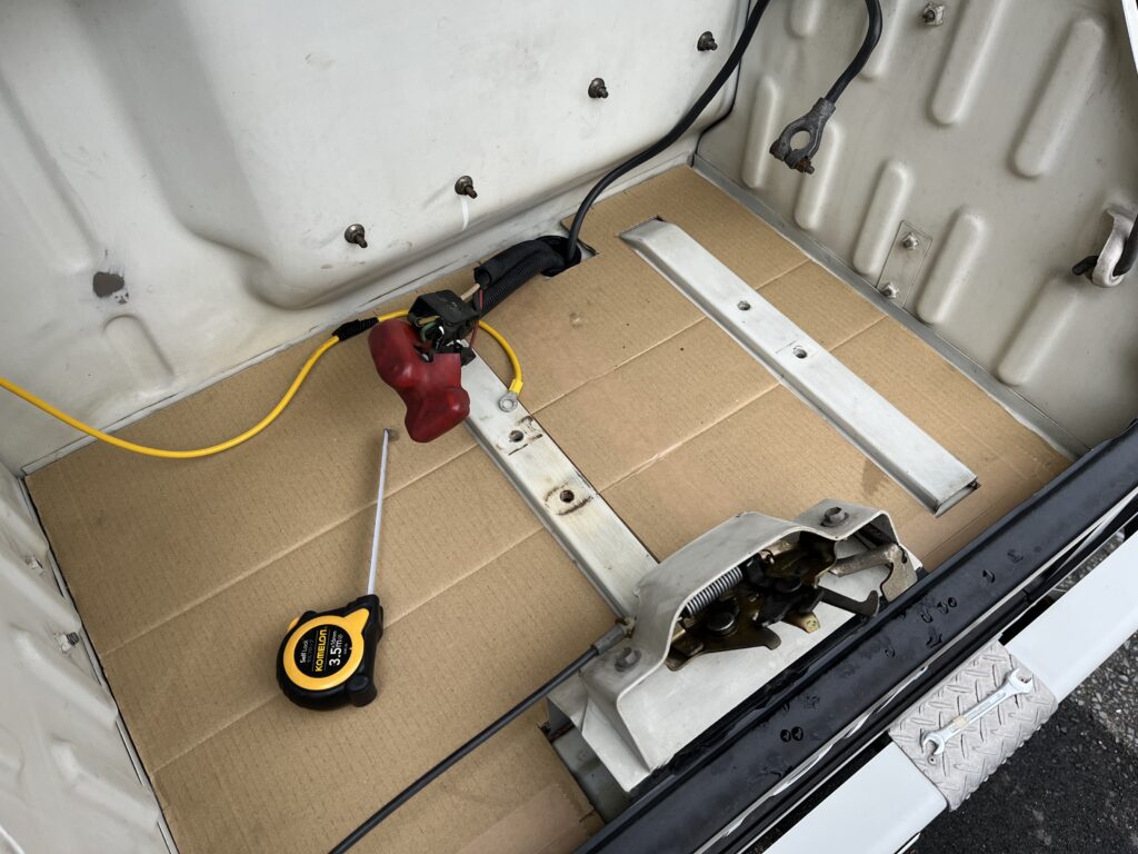 変わって車内には、運転席足下に走行充電器(エンジンの力でサブバッテリーに充電する機器)とインバーター(車内で電化製品を使用するために直流電気を交流電気に変える機器)を配置します。どの機器も雨に濡らしてはいけませんが、その中でも雨に濡らせない上記の機器を車内に置くことにしました。これらは車内でインジケーター(作動状況)を確認する必要もありますので、すぐに目に入るところに設置するのが良いと思います。