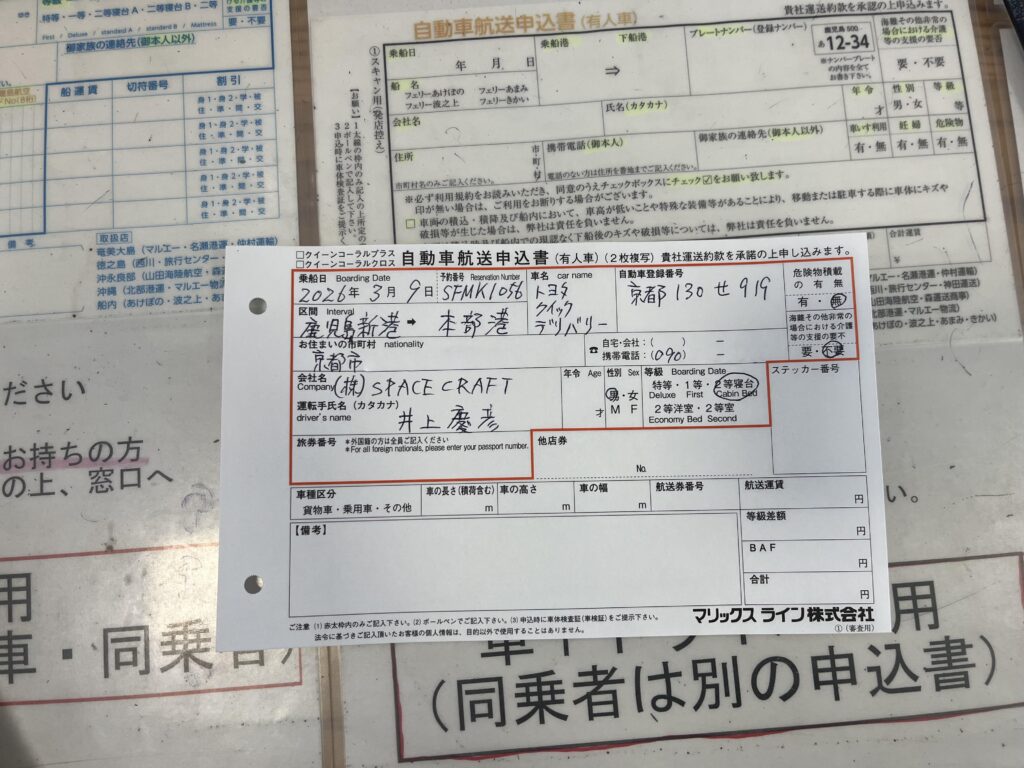 ・自動車航送申込書